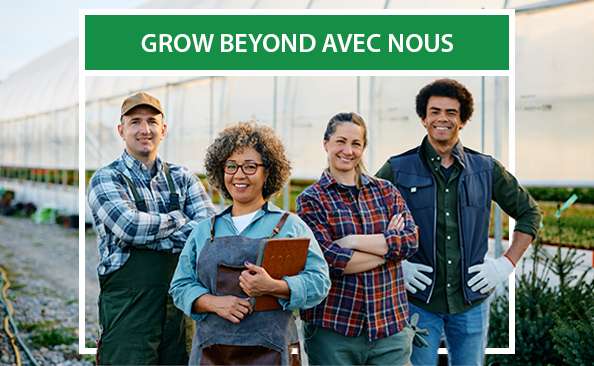 Nous nous engageons à aider les agriculteurs à GROW BEYOND (se dépasser, se développer)