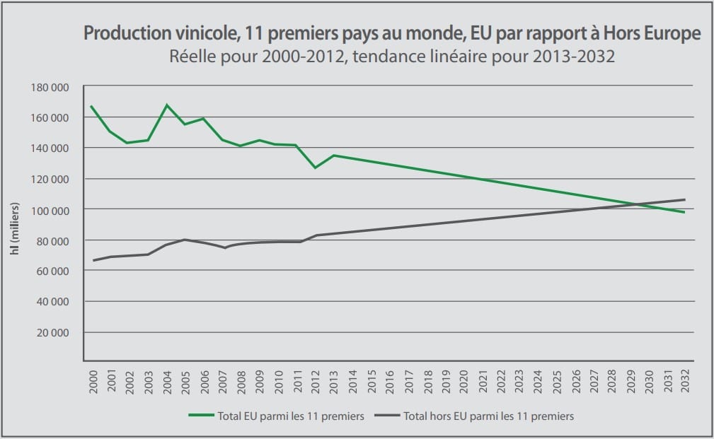 L’Europe (production dite de « l’Ancien Monde ») représente 76 % de la surface mondiale de vignes en production.