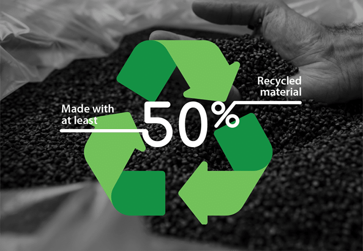 - La couche centrale est fabriquée à partir de matériaux recyclés, ce qui la rend plus durable. Il s’agit d’un processus difficile qui exige une innovation et une ingénierie de pointe.