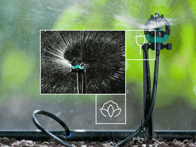 Options d’installation : Installez les asperseurs au sol à l’aide d’un piquet en plastique ou suspendez-les à un fil au moyen du crochet intégré.